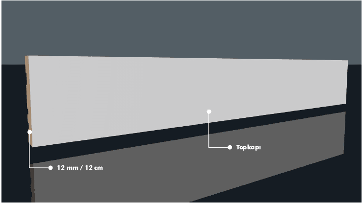 - Topkapı Saten Beyaz PVC Süpürgelik MDF lamlarından en çok kullanılan saten beyaz renginde üretilmesinden dolayı mobilya ve kapı panel rengine uyum konusunda sorun yaşamazsınız.